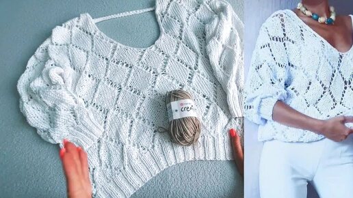 ВЯЖЕМ ПУЛОВЕР РОМБАМИ ИХ ХЛОПКА