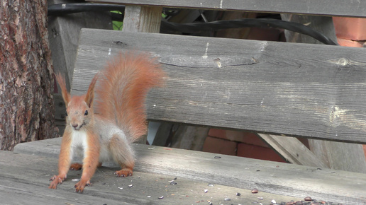Малышок осторожничает и правильно делает. #белка #бельчонок