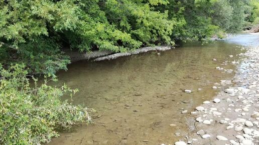 Река Уруп, горная река, в этом месте выходит на равнину.