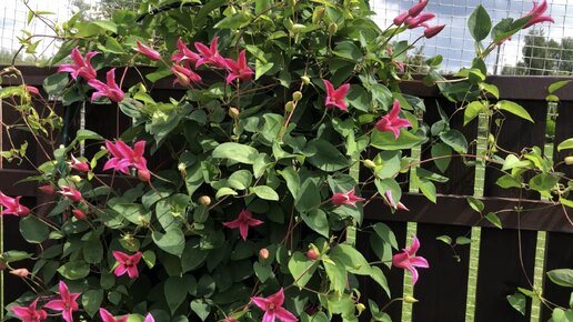 Цельнолистные клематисы: принцесса Диана, Ян Фопма, Литл Атист, Арабелла. Прогулка по саду.