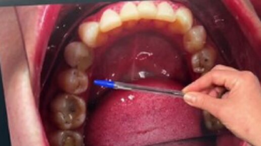 Клинический случай. Кариозные разрушения. Зубы не пролечены.