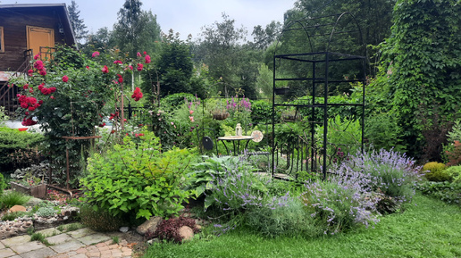 Что я вижу со скамейки или цветники вокруг лужайки.