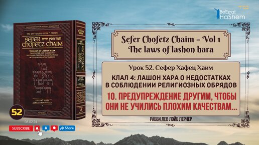 𝟱𝟮. Сефер Хафец Хаим | Предупреждение другим, чтобы они не учились плохим качествам