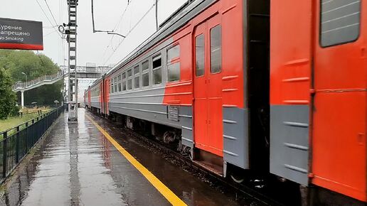 Электропоезд ЭД4М-0229 уезжает в дождь