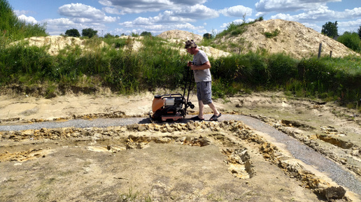 Отец и три сына строят дом. Уплотнение ВИБРОПЛИТОЙ основание под блочный фундамент