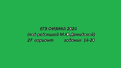 ЕГЭ ФИЗИКА 2024 (под реакцией М. Ю. Демидовой) 27 вариант, задания с 14 по 20.