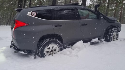 Паджеро спорт 3 по глубокому снегу на 35х шинах.