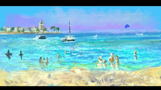 Морской пейзаж - процесс создания рисунка в Procreate