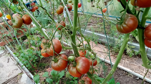 Прелести томатной теплицы и экспресс сбор многоцветных помидоров
