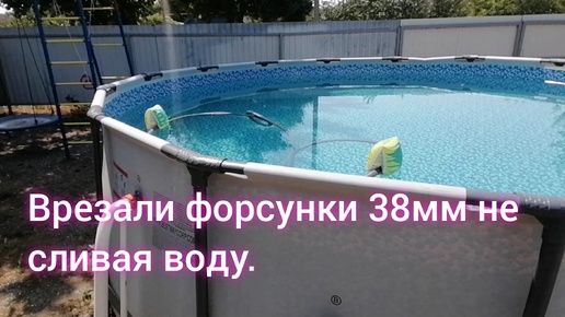 Каркасный бассейн. Заменили форсунки. Врезали форсунки 38мм не сливая воду.