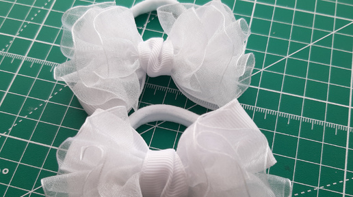 Красивые бантики БАБОЧКА на резиночке из репсовой ленты 2,5см и органзы 2,5см в школу