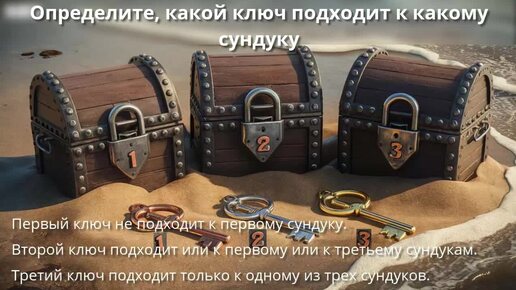 Задача 2. Определите, какой из 3 ключей подходит к какому сундуку