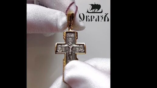 Крест с образом Божия Матерь Всецарица и целителями, серебро 925 проба с золочением (арт. 17.014)