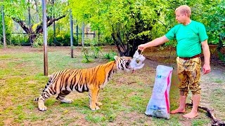 Будни Олега Зубкова-накормить с рук тигра курицей и самому полакомиться вишней среди хищников!