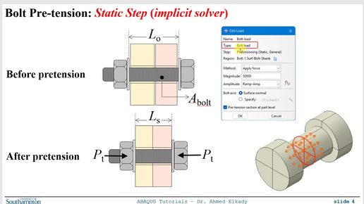 #40 ABAQUS Tutorial Modeling Bolt Pretension in Dynamic Explicit Analysis