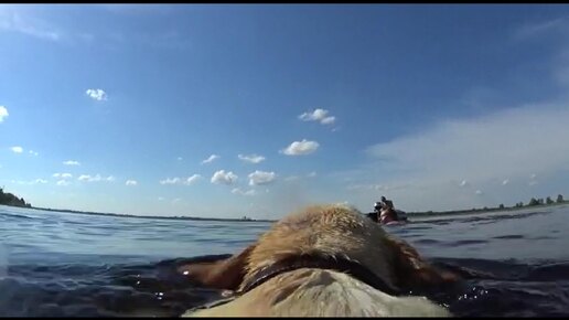 Лабрадор плавает с Экшн Камерой на спине. Мир глазами собаки.