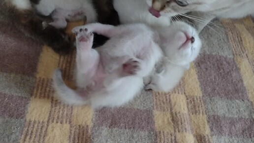 Смешной тайский котенок, спит и видит какие-то сны