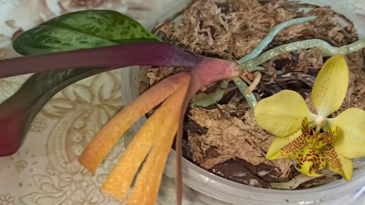 Снимаю, режу листья у орхидеи stuartiana var. nobilis ( yellow)