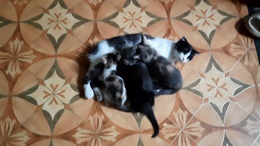 Четверо котов съедают маленькую кошку!)