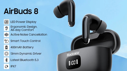 Распаковка TWS-наушников Blackview AirBuds 8 с поддержкой Bluetooth 5,3 и сенсорным управлением