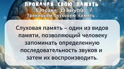 Ваша тренировка на 23 августа! Тренируем слуховую память
