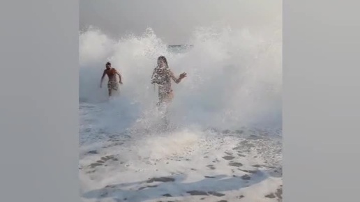 Волна накрыла мужчину. А вы бы хотели по плавать в волнующем море?
