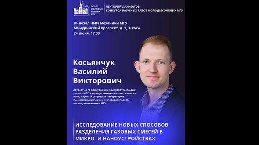 В.В. Косьянчук "Исследование новых способов разделения газовых смесей в микро- и наноустройствах".