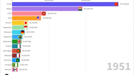 Топ 15 стран по численности населения с 1950 по 2000 года