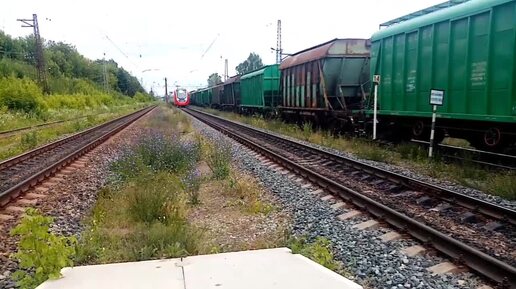 Электричка Финист прибывает на станцию Кабельную на Гайве.
