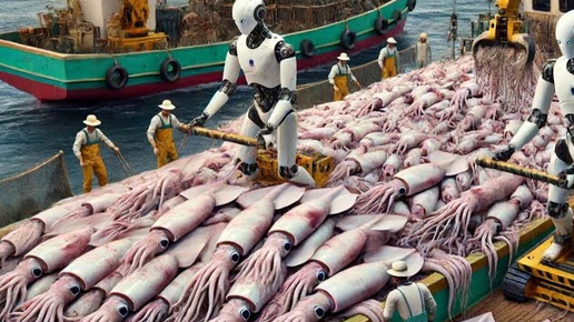 Корейские рыбаки используют роботов для вылова миллионов тонн кальмаров, скумбрии и минтая.