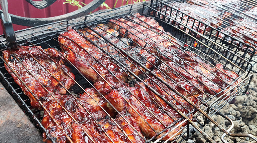Свиные рëбрышки в глазури на мангале