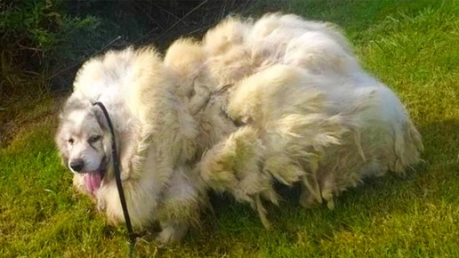 Собака, которой пренебрегают годами, наконец получает стрижку, раскрывающую её внешность