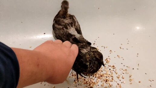 Выкармливаю птенцов голубей: первый раз едят зерно (замоченное в воде)