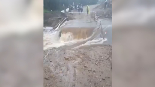 Часть временного моста на 28-м километре трассы Нижнеудинск — Чуна смыла река Хингуйка