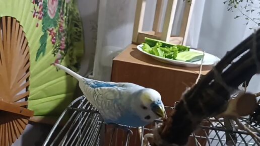 Голубой волнистик самец. Наше Облачко на клетке 🦜