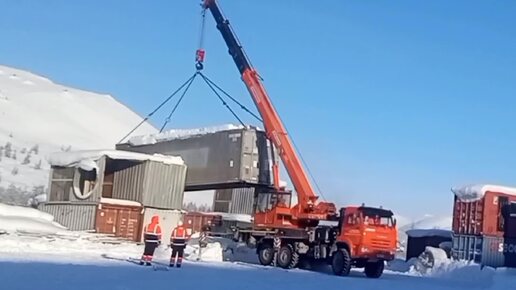 Вот что значит, когда автокран чувствуешь пятой точкой. Подъем большого контейнера с перегрузкой автокрана.