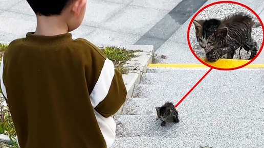 Голодный Котенок Мяучит и Просит Мальчика о Помощи