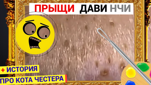 Очень Желтые Комедоны густо сели на Коже. Релакс выдавливание. Кот Честер очень миролюбивый домашний питомец, спрятался так что едва нашли