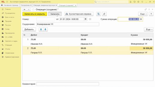 Как сформировать уставный капитал в программе 1С. Разбираем на примере
