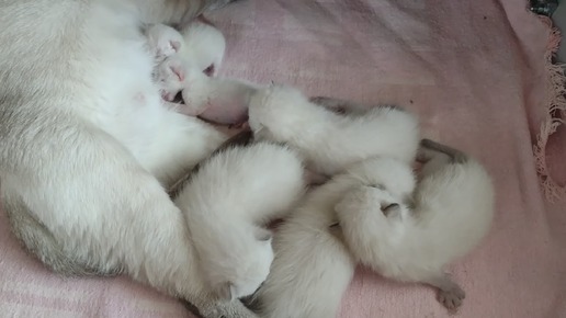 Варя и Синистра кормят каждая своих котят, котята четко знают, где чья мама