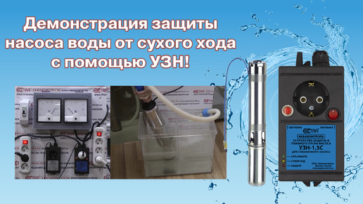 Демонстрация защиты насоса воды от сухого хода с помощью устройства защиты насоса (УЗН).