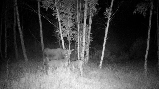 Лосиха с лосятами.