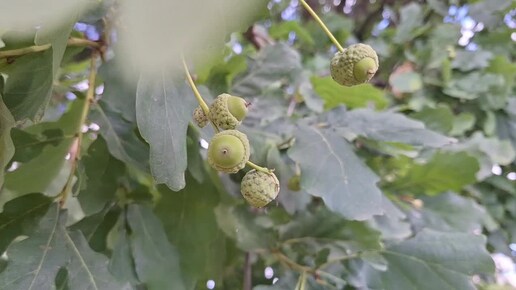 Жёлуди с пипочкой, странные зелёные шарики на дубе, огород и кошка
