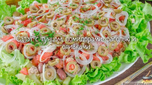 Салат с тунцом, помидорами, фасолью и оливками