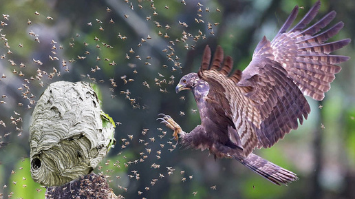 Этот Ястреб Разносит гнезда ОГРОМНЫХ шершней, ос и пчел! Осоед — бронированный охотник!