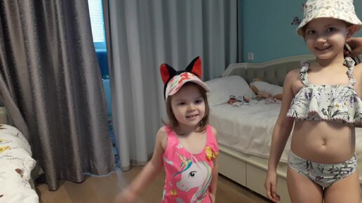 Ура! Лето! Девочки 8 и 4 лет "выгуливают" купальники и организовывают бассейн дома. Номинация детского дефиле "Идём купаться"