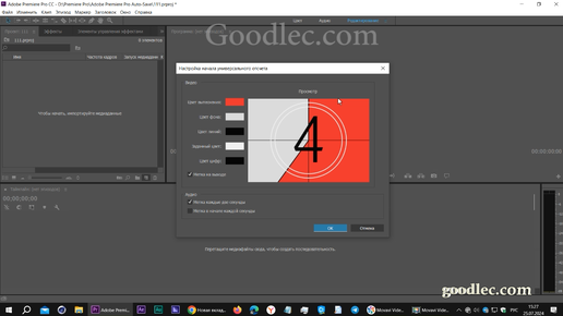 Начало универсального отсчета в Premiere Pro