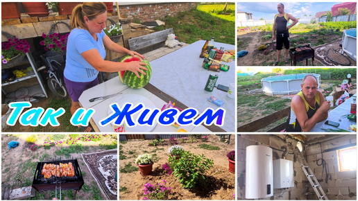 Купили в первый раз арбуз. Жарим шашлыки. Жуки поели картошку. Огородные хлопоты