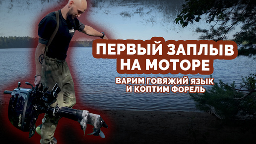 Первый заплыв на моторе. Озеро Исо-ийярви. Варим говяжий язык и коптим форель.