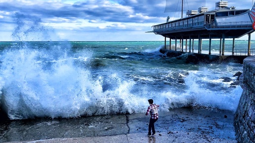 ДИКИЙ ШТОРМ пугает людей. ПАРЕНЬ стоял слишком БЛИЗКО. Показываю ВСЮ ПРАВДУ. Крым Ялта сегодня.